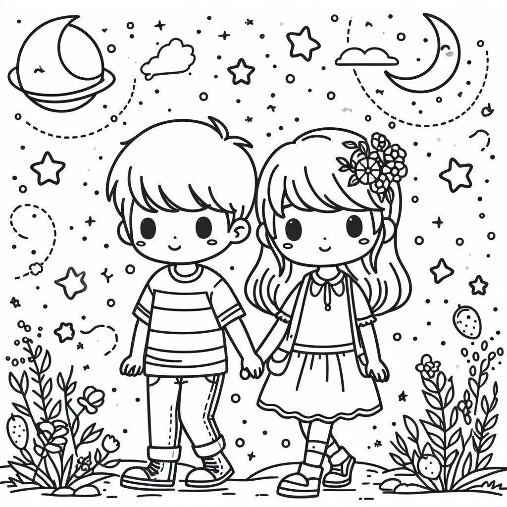 דף צביעה תמונה של דף צביעה של ילד וילדה בחינם להדפסה או צביעה אונליין