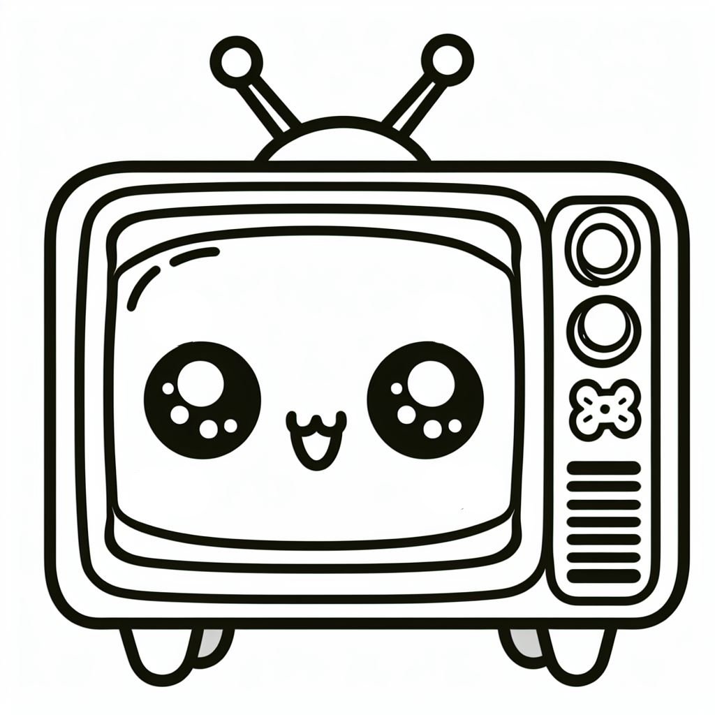 דף צביעה של טלוויזיה חמודה להדפסה או להורדה בחינם, למחשב או לטלפון (אפשר להדפיס גם מהטלפון) ציור של טלוויזיה חמודה לצביעה, איור של טלוויזיה חמודה להדפסה לצביעה לילדים
