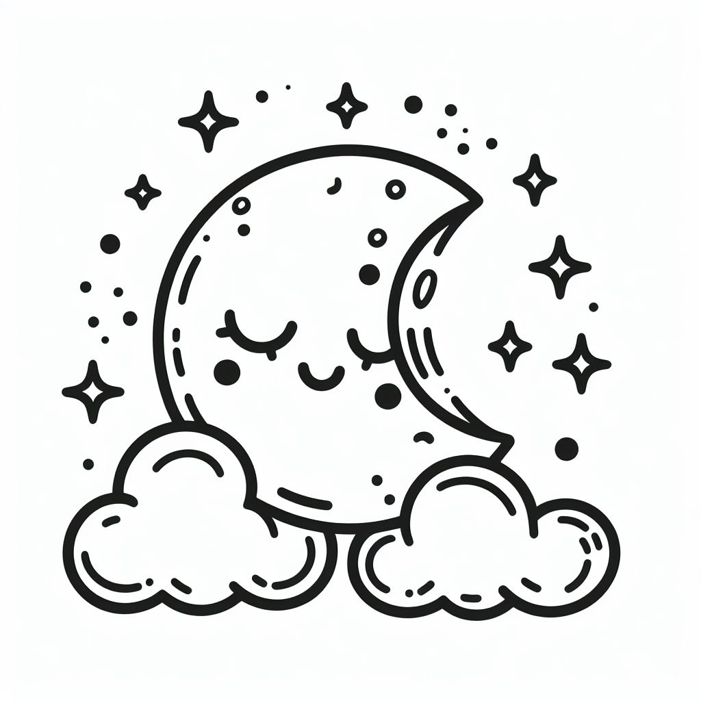 דף צביעה של ירח להדפסה או להורדה בחינם, למחשב או לטלפון (אפשר להדפיס גם מהטלפון) ציור של ירח לצביעה, איור של ירח להדפסה לצביעה לילדים