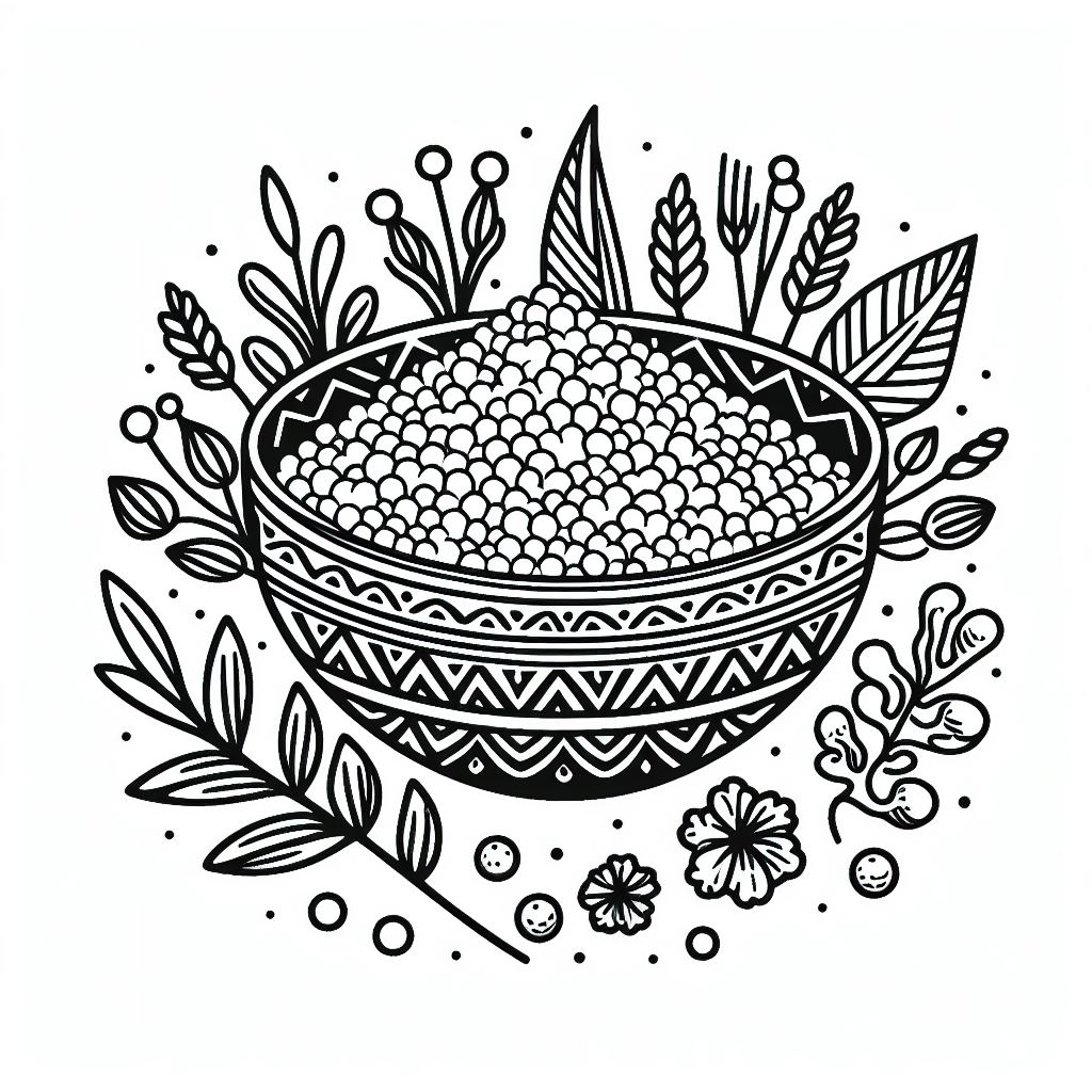 ציור של צלחת קוסקוס לצביעה, איור של צלחת קוסקוס להדפסה לצביעה לילדים