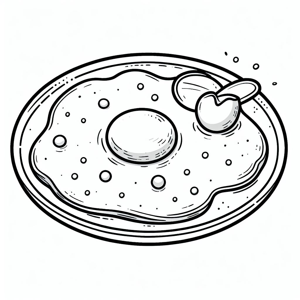 תמונה של חביתה בשחור לבן להדפסה בחינם. דף עבודה לצביעה של חביתה להורדה או שמירה במחשב.
