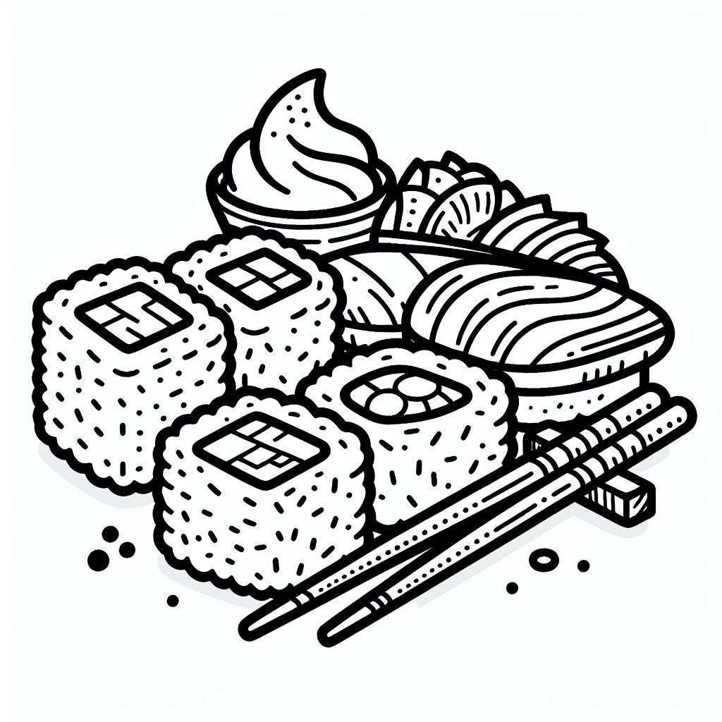 דף צביעה של סושי - דף צביעה של סושי להדפסה, ציור של סושי לצביעה בחינם