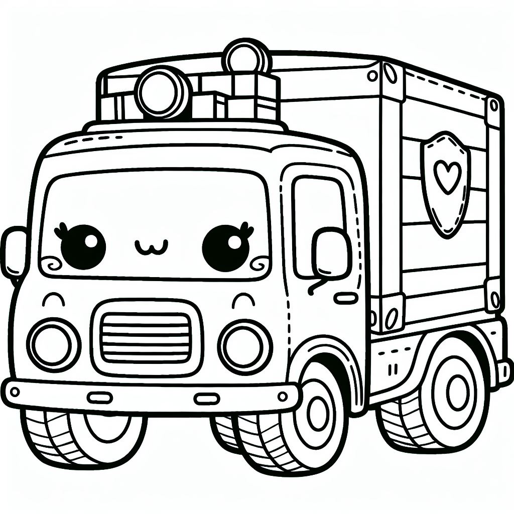 דף צביעה של משאית חמודה - דף צביעה של משאית חמודה להדפסה, ציור של משאית חמודה לצביעה בחינם