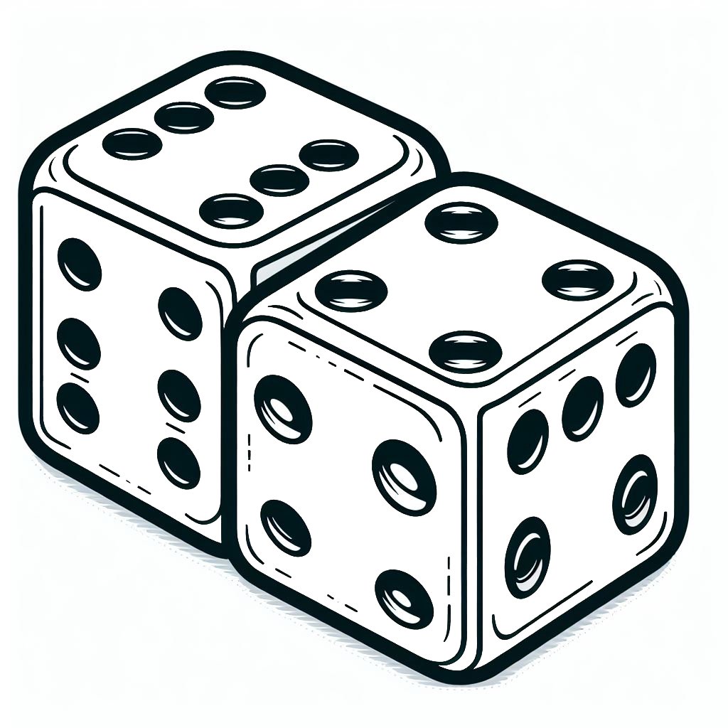 תמונה של קוביות משחק בשחור לבן להדפסה בחינם. דף עבודה לצביעה של קוביות משחק להורדה או שמירה במחשב.