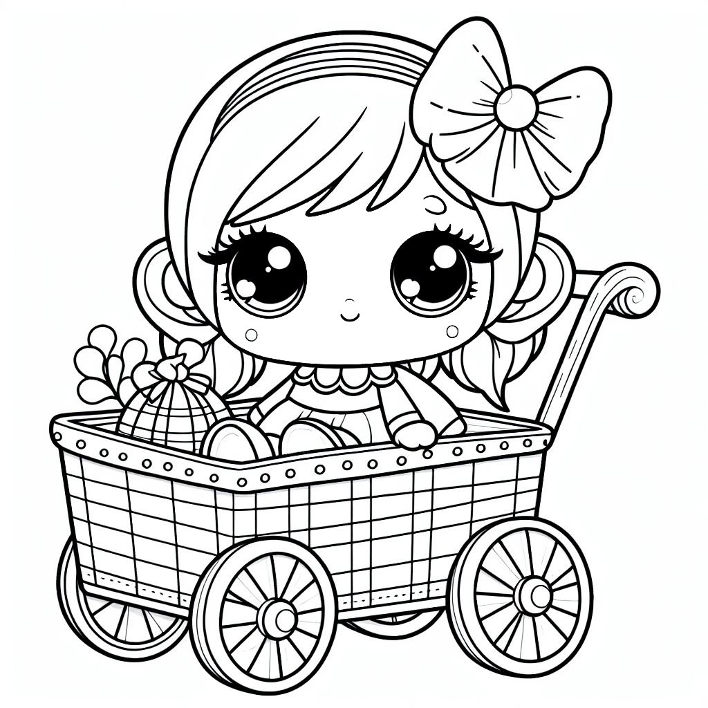 דף צביעה של בובה בעגלה להדפסה בחינם