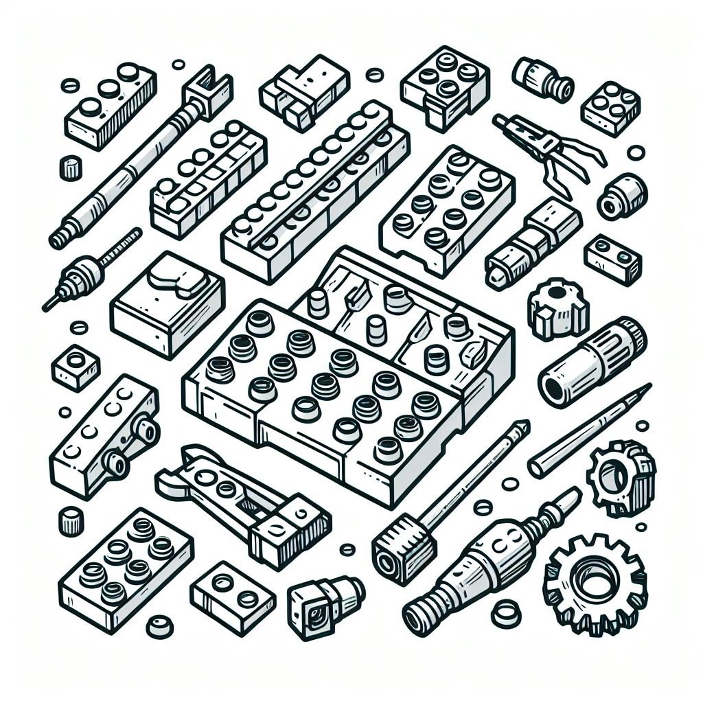 תמונה של לגו בשחור לבן להדפסה בחינם. דף עבודה לצביעה של לגו להורדה או שמירה במחשב.