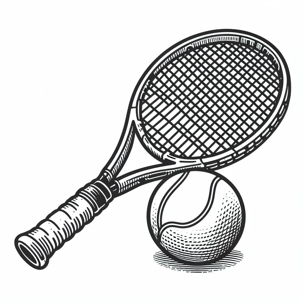 תמונה של טניס בשחור לבן להדפסה בחינם. דף עבודה לצביעה של טניס להורדה או שמירה במחשב.