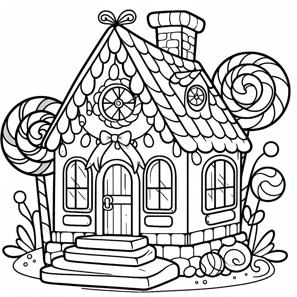 תמונה של בית ממתקים עמי ותמי בשחור לבן להדפסה בחינם. דף עבודה לצביעה של בית ממתקים עמי ותמי להורדה או שמירה במחשב.