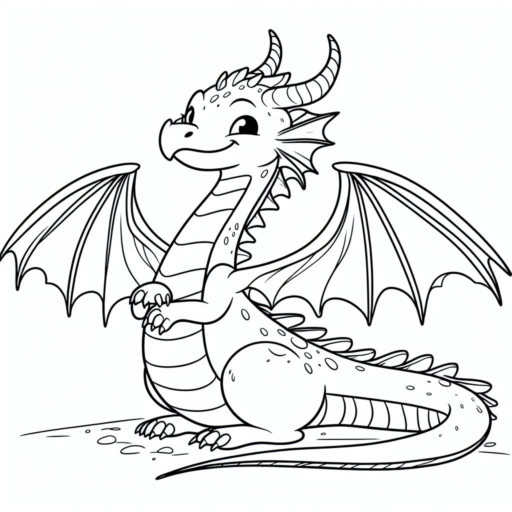 דף צביעה להדפסה או להורדה חינם של דרקון חמוד מהאגדות