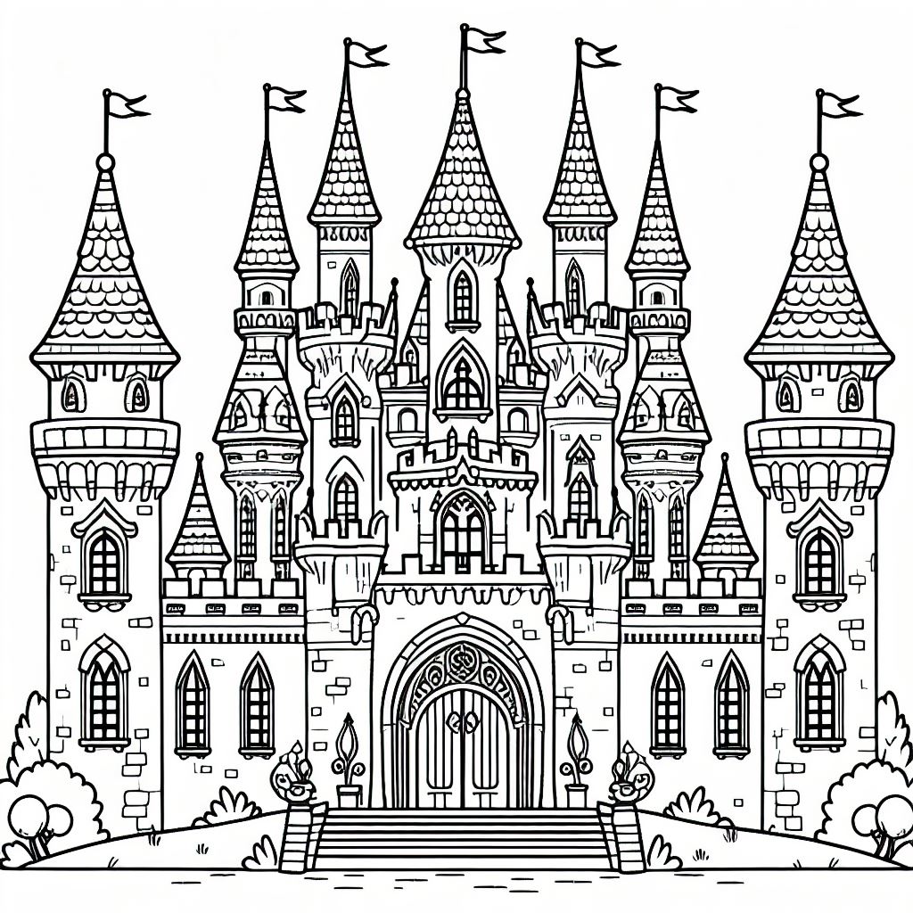 ציור של טירה מהאגדות לצביעה, איור של טירה מהאגדות להדפסה לצביעה לילדים