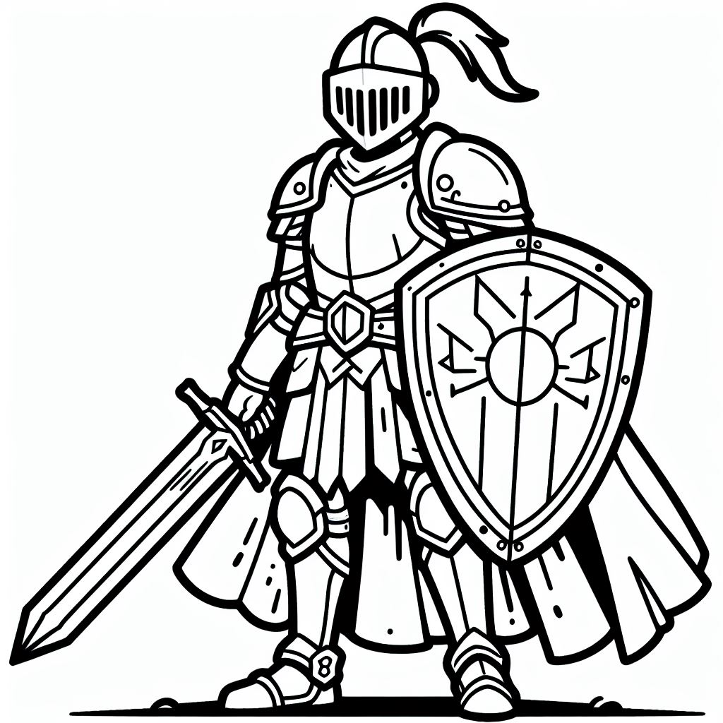 ציור של לוחם עם שיריון לצביעה, איור של לוחם עם שיריון להדפסה לצביעה לילדים