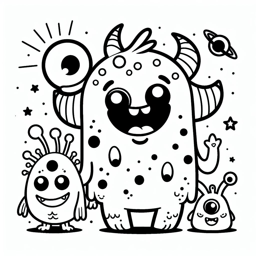תמונה של מפלצות מצחיקות בשחור לבן להדפסה בחינם. דף עבודה לצביעה של מפלצות מצחיקות להורדה או שמירה במחשב.