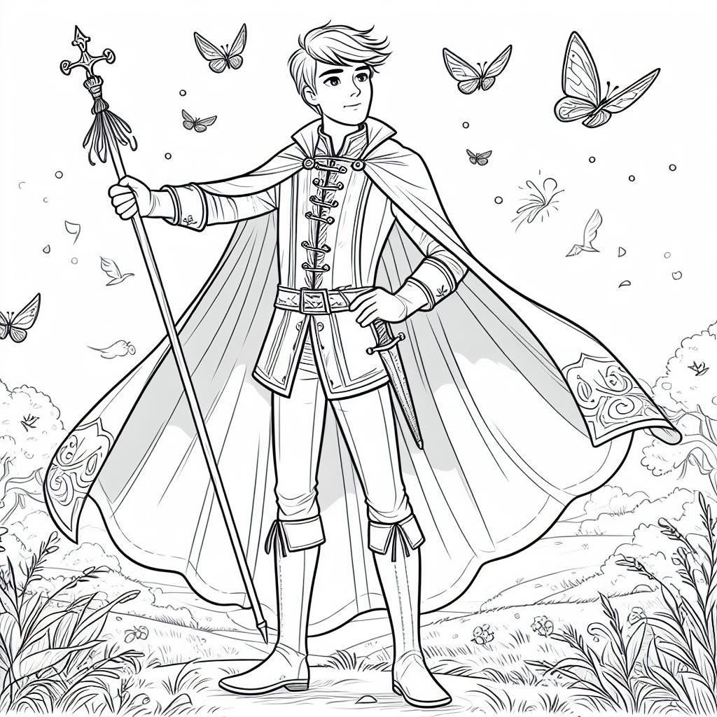 דף צביעה של נסיך מהאגדה להדפסה בחינם