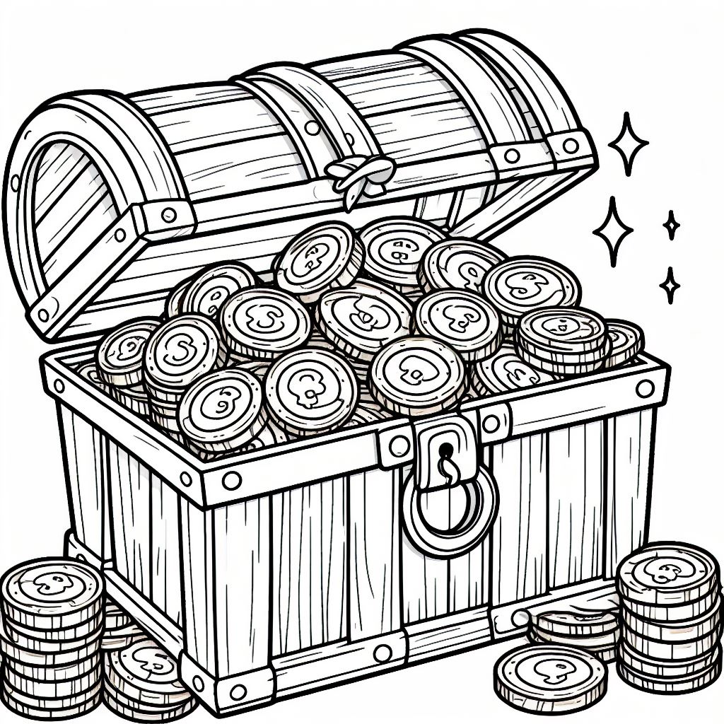 דף צביעה של תיבת אוצר - דף צביעה של תיבת אוצר להדפסה, ציור של תיבת אוצר לצביעה בחינם