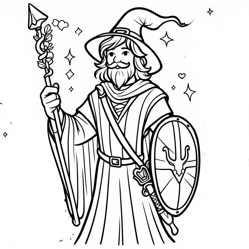 דף צביעה של קוסם מהאגדות להדפסה או להורדה בחינם, למחשב או לטלפון (אפשר להדפיס גם מהטלפון)