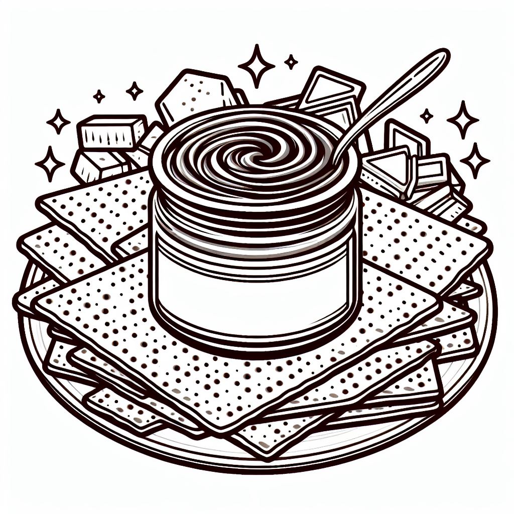 ציור של מצות עם שוקולד לצביעה, איור של מצות עם שוקולד להדפסה לצביעה לילדים