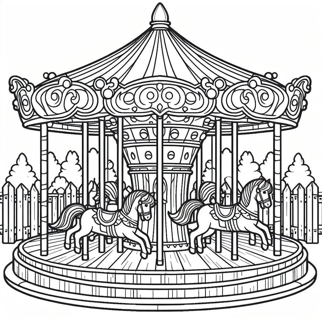 דף צביעה של קרוסלה להדפסה או להורדה בחינם, למחשב או לטלפון (אפשר להדפיס גם מהטלפון) ציור של קרוסלה לצביעה, איור של קרוסלה להדפסה לצביעה לילדים