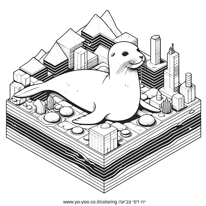 דף צביעה של כלב ים תלת מימדי להדפסה או להורדה בחינם, למחשב או לטלפון (אפשר להדפיס גם מהטלפון)