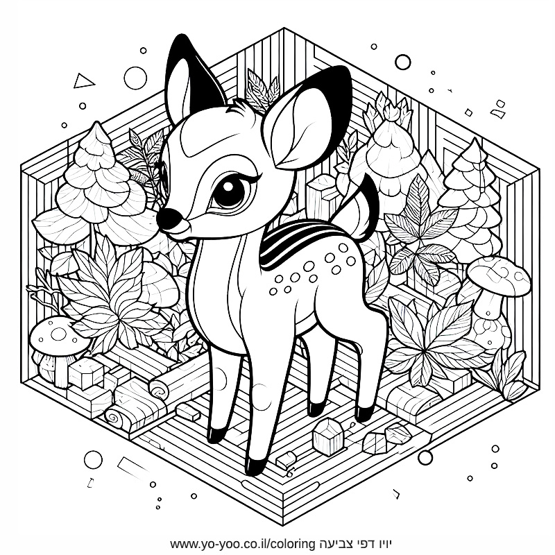 דף צביעה של עופר איילים תלת מימדי להדפסה בחינם