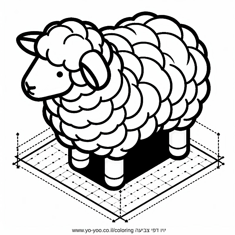 דף צביעה של כבשה תלת מימדית להדפסה או להורדה בחינם, למחשב או לטלפון (אפשר להדפיס גם מהטלפון)