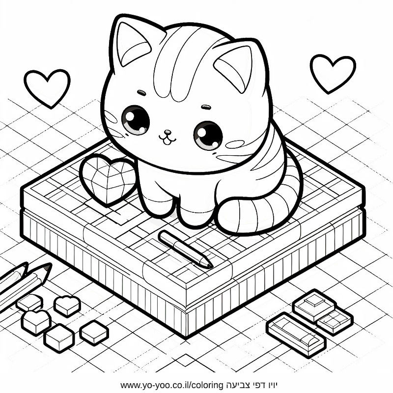 דף צביעה של חתולה תלת מימדית להדפסה או להורדה בחינם, למחשב או לטלפון (אפשר להדפיס גם מהטלפון)