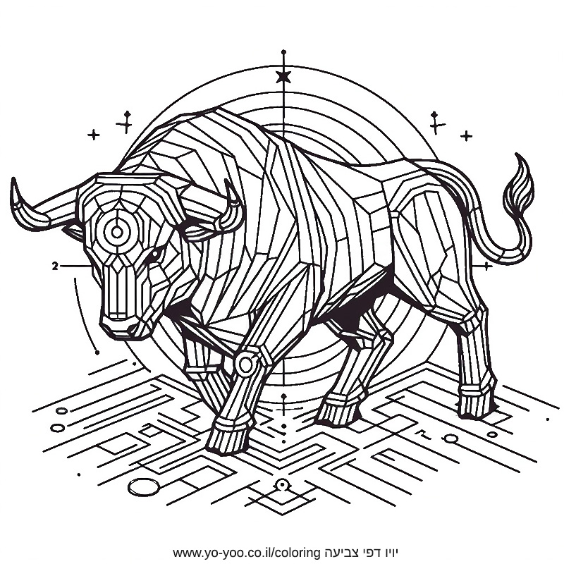 דף צביעה של שור תלת מימדי להדפסה או להורדה בחינם, למחשב או לטלפון (אפשר להדפיס גם מהטלפון)