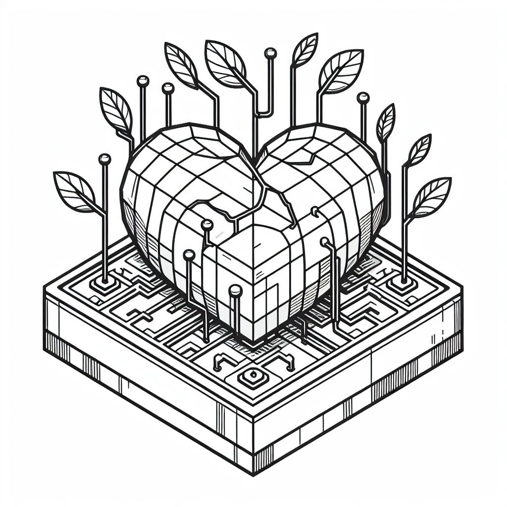 ציור של לב בתלת מימד לצביעה, איור של לב בתלת מימד להדפסה לצביעה לילדים