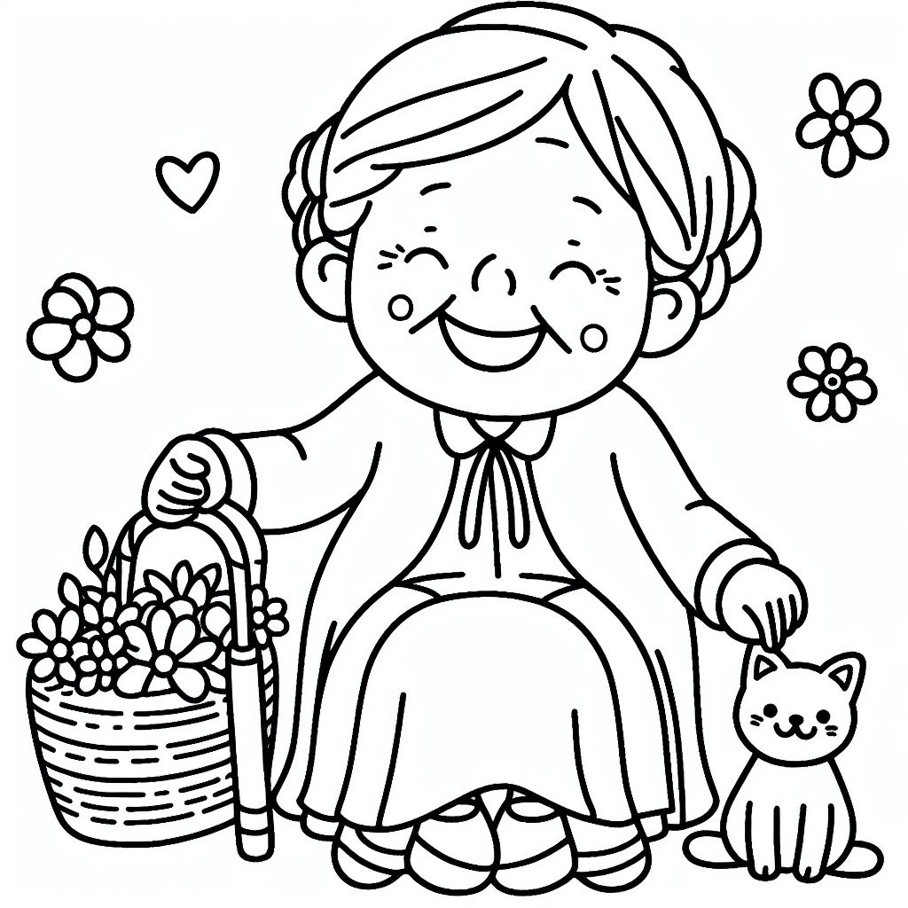 ציור של סבתא לצביעה, איור של סבתא להדפסה לצביעה לילדים