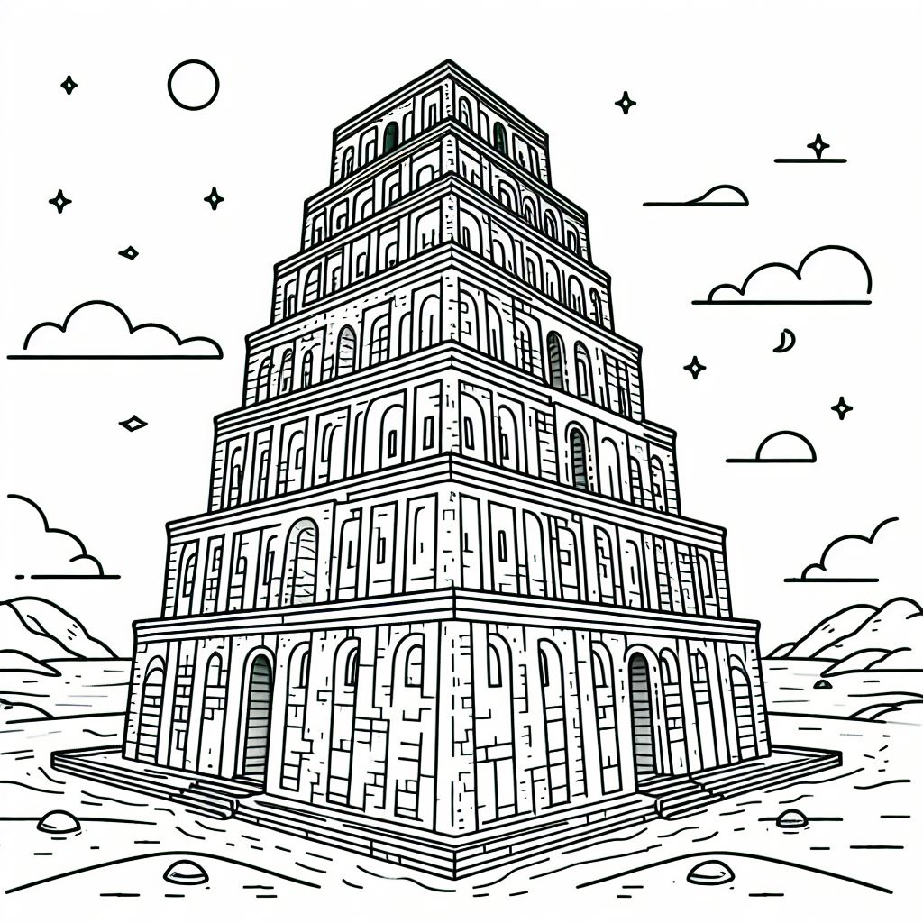 דף צביעה של מגדל בבל להדפסה או להורדה בחינם, למחשב או לטלפון (אפשר להדפיס גם מהטלפון) ציור של מגדל בבל לצביעה, איור של מגדל בבל להדפסה לצביעה לילדים
