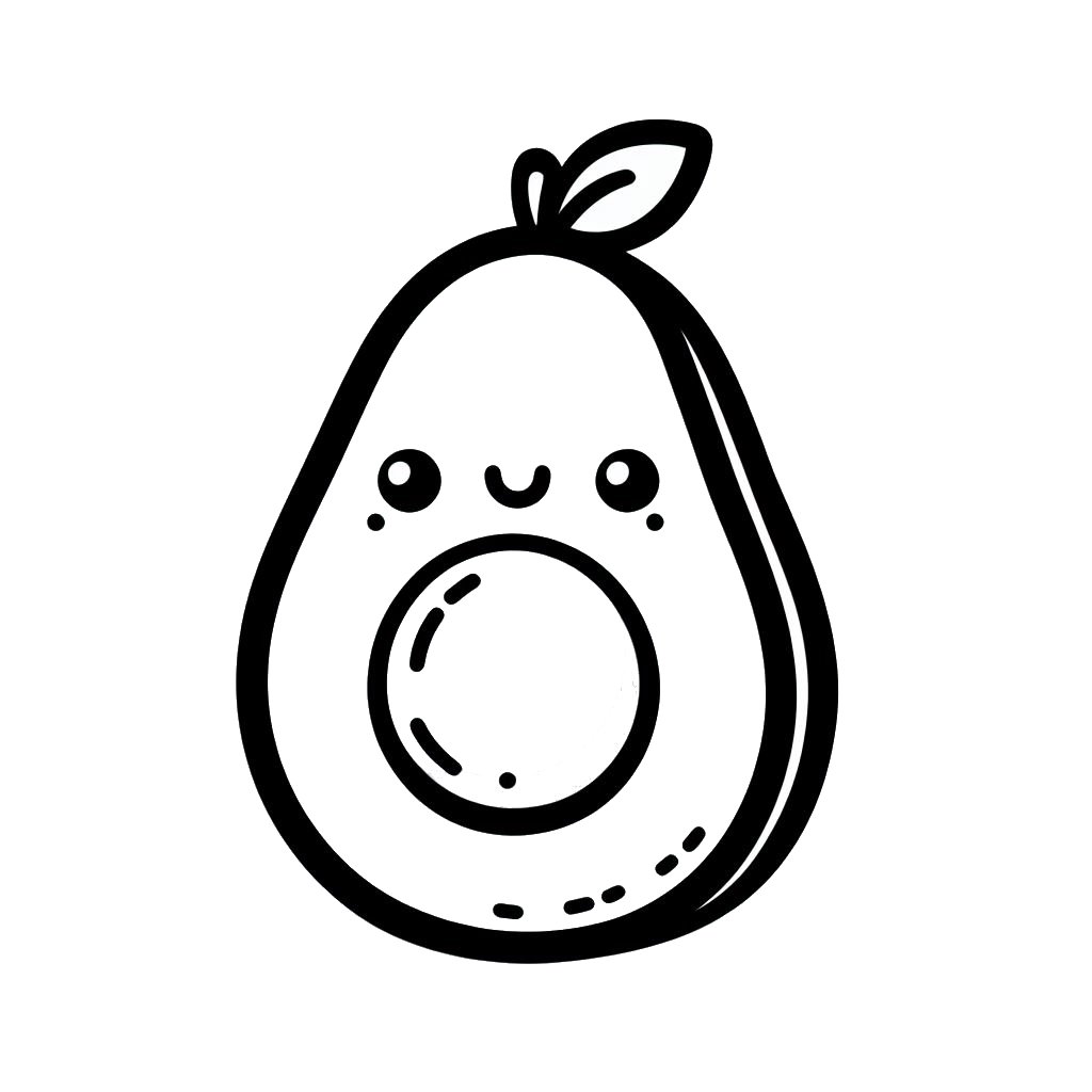 דף צביעה של אבוקדו חמוד להדפסה או להורדה בחינם, למחשב או לטלפון (אפשר להדפיס גם מהטלפון) ציור של אבוקדו חמוד לצביעה, איור של אבוקדו חמוד להדפסה לצביעה לילדים