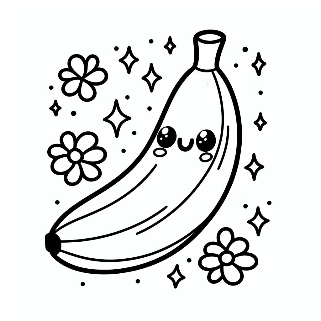 ציור של בננה חמודה לצביעה, איור של בננה חמודה להדפסה לצביעה לילדים