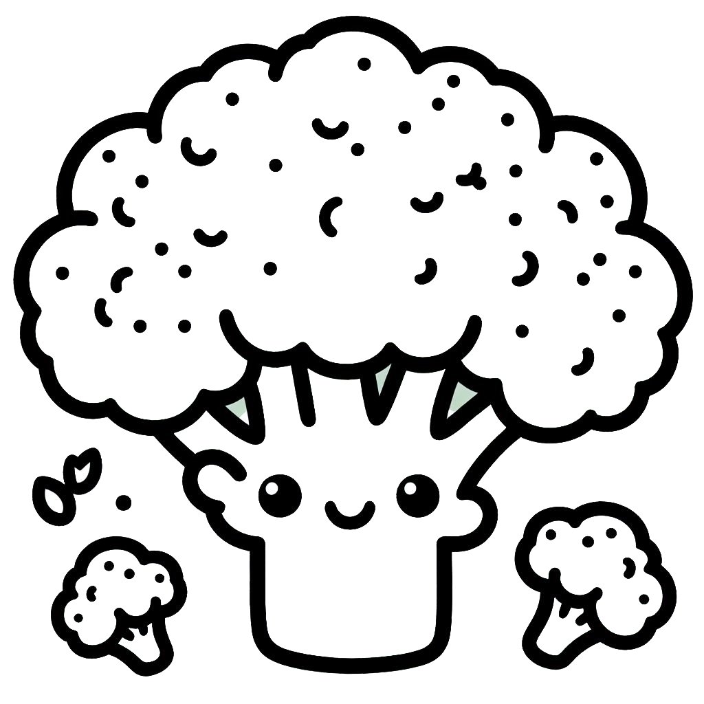 דף ברוקולי לצביעה , ברוקולי להדפסה לצביעה, מתאים לדף בגודל A4 להדפסה בחינם