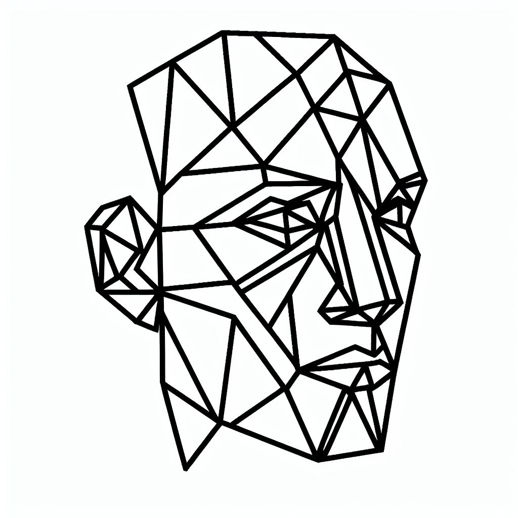 תמונה של פנים גיאומטרי בשחור לבן להדפסה בחינם. דף עבודה לצביעה של פנים גיאומטרי להורדה או שמירה במחשב.
