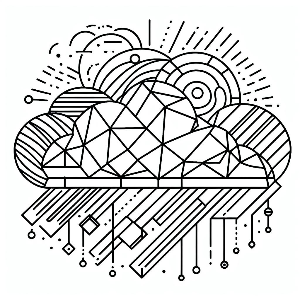 תמונה של ענן גיאומטרי בשחור לבן להדפסה בחינם. דף עבודה לצביעה של ענן גיאומטרי להורדה או שמירה במחשב.