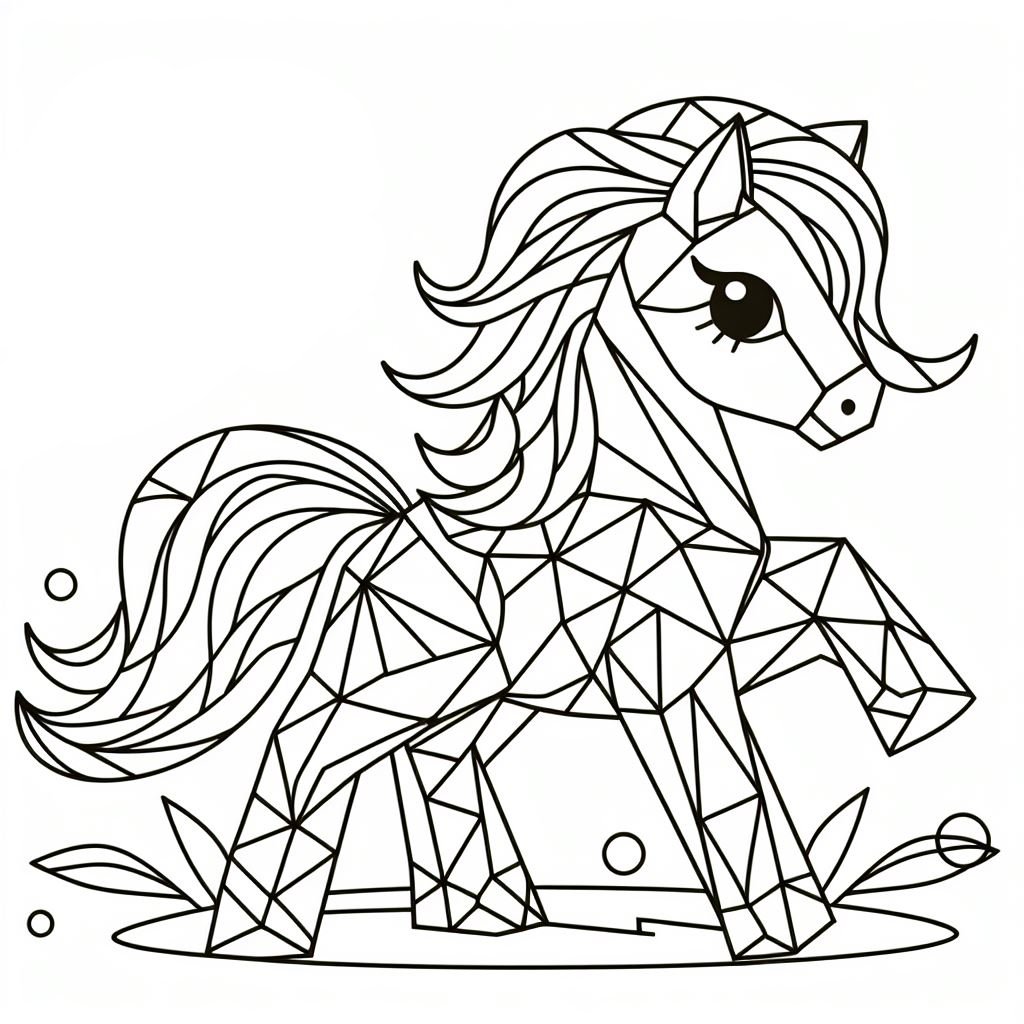 דף צביעה תמונה של סוס פוני גיאומטרי לצביעה בחינם להדפסה או צביעה אונליין