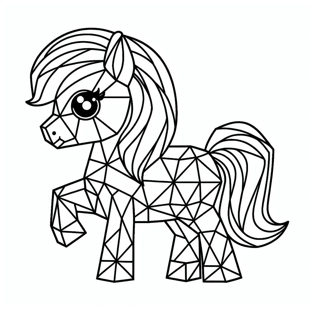 דף צביעה תמונה של סוס פוני גיאומטרי לצביעה בחינם להדפסה או צביעה אונליין