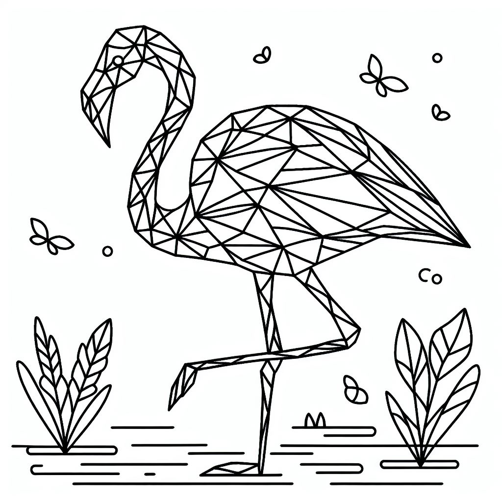 דף צביעה להדפסה או להורדה חינם של פלמינגו גיאומטרי
