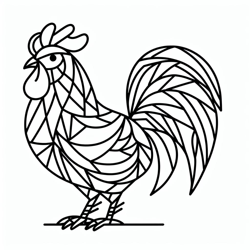 דף צביעה של תרנגול גיאומטרי להדפסה או להורדה בחינם, למחשב או לטלפון (אפשר להדפיס גם מהטלפון) ציור של תרנגול גיאומטרי לצביעה, איור של תרנגול גיאומטרי להדפסה לצביעה לילדים