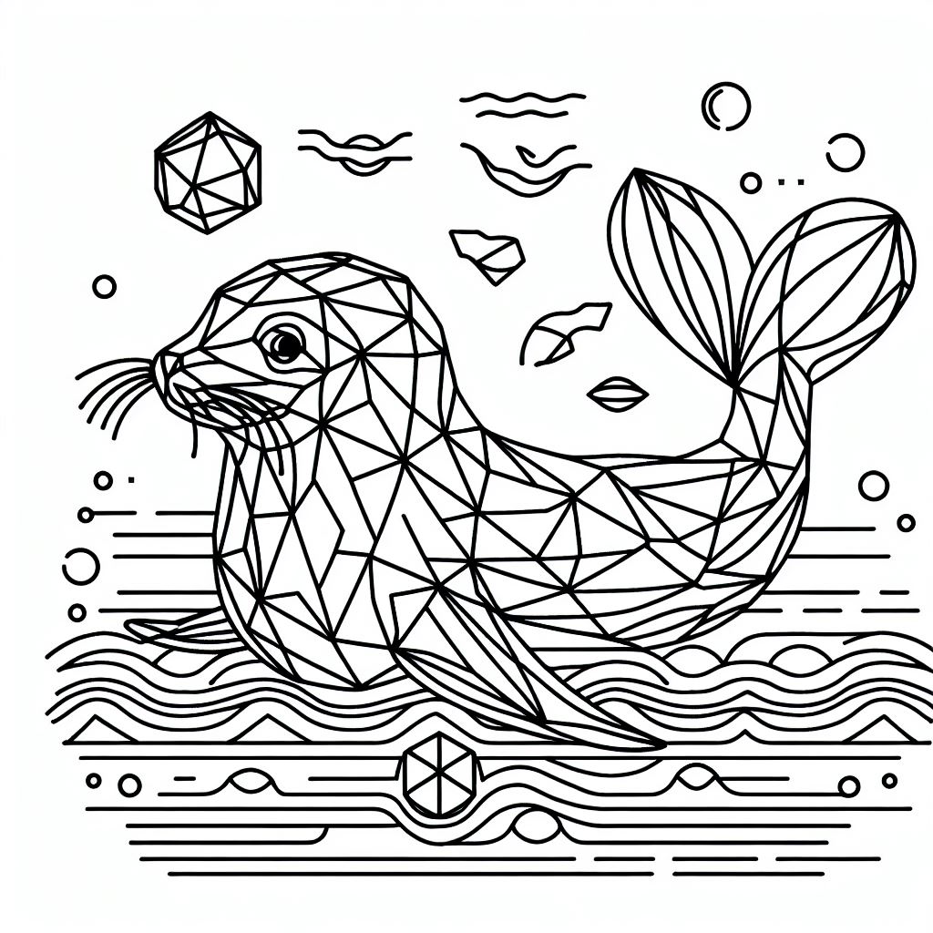 דף צביעה של כלב ים גיאומטרי להדפסה בחינם
