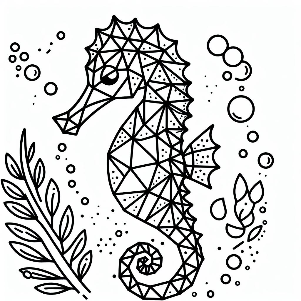 דף צביעה תמונה של סוס ים גיאומטרי לצביעה בחינם להדפסה או צביעה אונליין