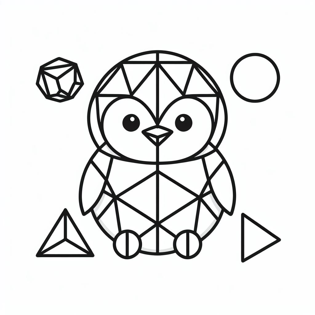 דף צביעה של פינגווין גיאומטרי להדפסה או להורדה בחינם, למחשב או לטלפון (אפשר להדפיס גם מהטלפון) ציור של פינגווין גיאומטרי לצביעה, איור של פינגווין גיאומטרי להדפסה לצביעה לילדים