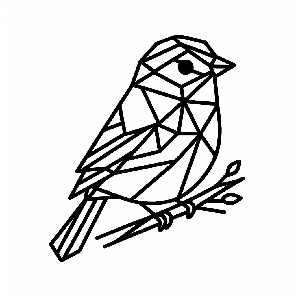 דף צביעה של ציפור גיאומטרית להדפסה או להורדה בחינם, למחשב או לטלפון (אפשר להדפיס גם מהטלפון) ציור של ציפור גיאומטרית לצביעה, איור של ציפור גיאומטרית להדפסה לצביעה לילדים