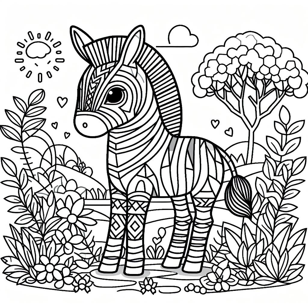 דף צביעה להדפסה או להורדה חינם של זברה חמודה גיאומטרית