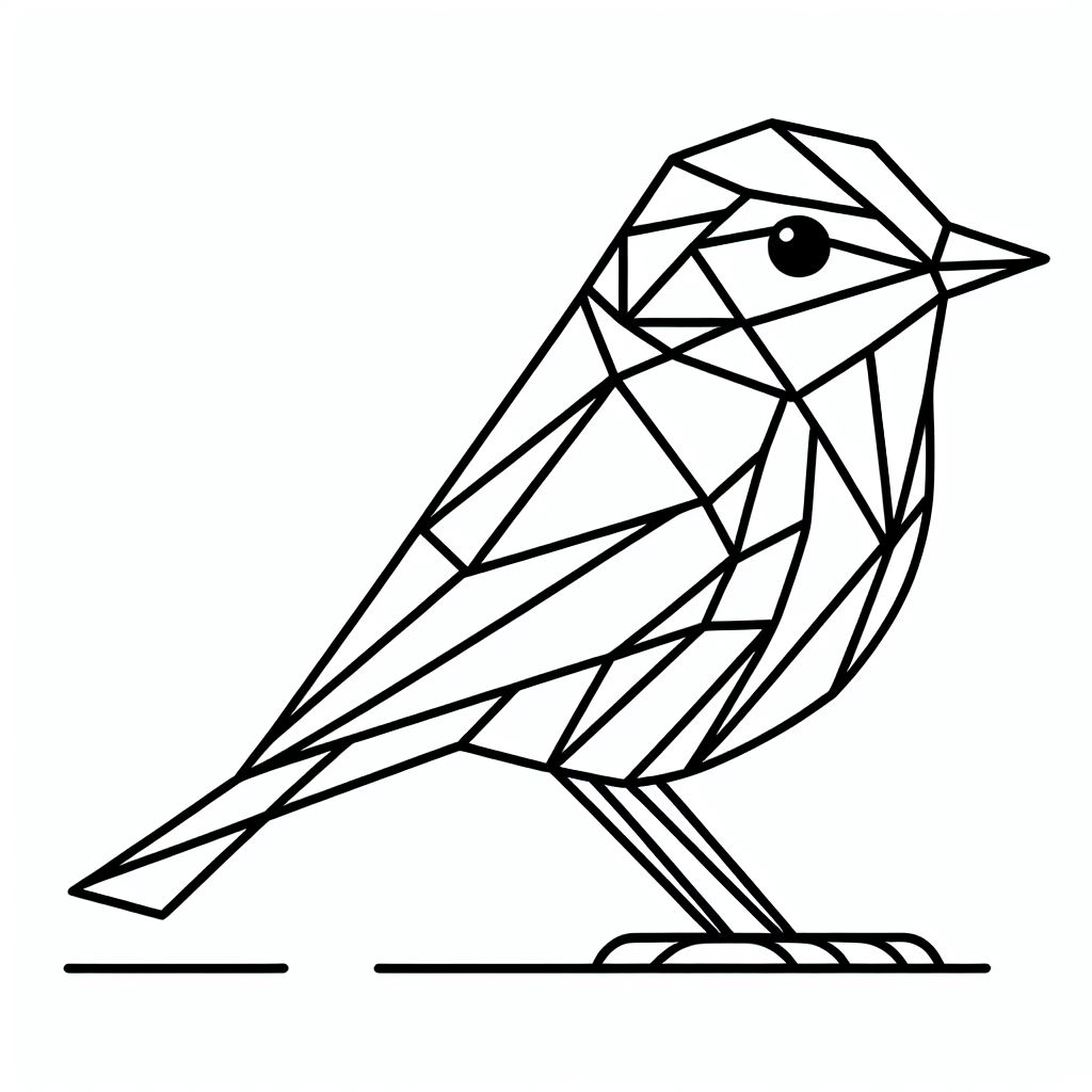 דף צביעה של ציפור יפה גיאומטרית להדפסה או להורדה בחינם, למחשב או לטלפון (אפשר להדפיס גם מהטלפון) ציור של ציפור יפה גיאומטרית לצביעה, איור של ציפור יפה גיאומטרית להדפסה לצביעה לילדים