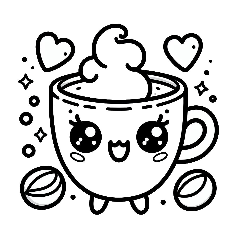 ציור של כוס קפה חמודה לצביעה, איור של כוס קפה חמודה להדפסה לצביעה לילדים