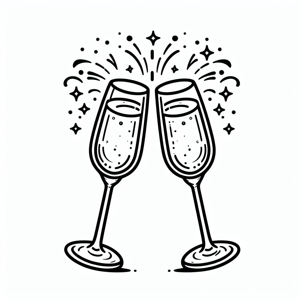 ציור של כוסות שמפניה לצביעה, איור של כוסות שמפניה להדפסה לצביעה לילדים