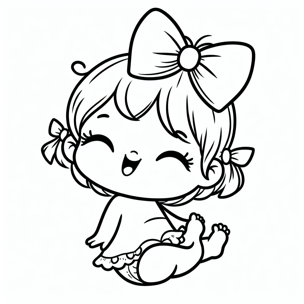 ציור של תינוקת לצביעה, איור של תינוקת להדפסה לצביעה לילדים