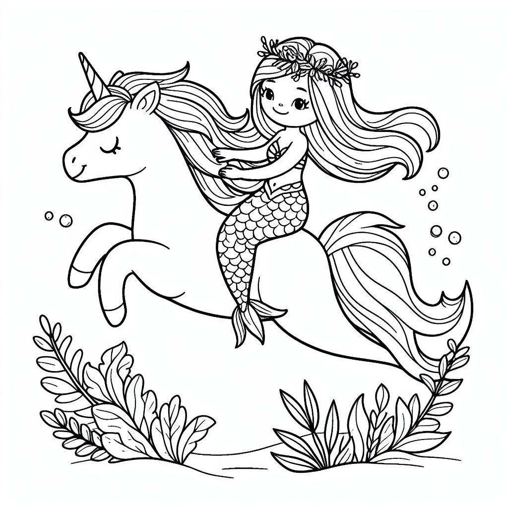 דף צביעה תמונה של חד קרן ובת ים לצביעה בחינם להדפסה או צביעה אונליין