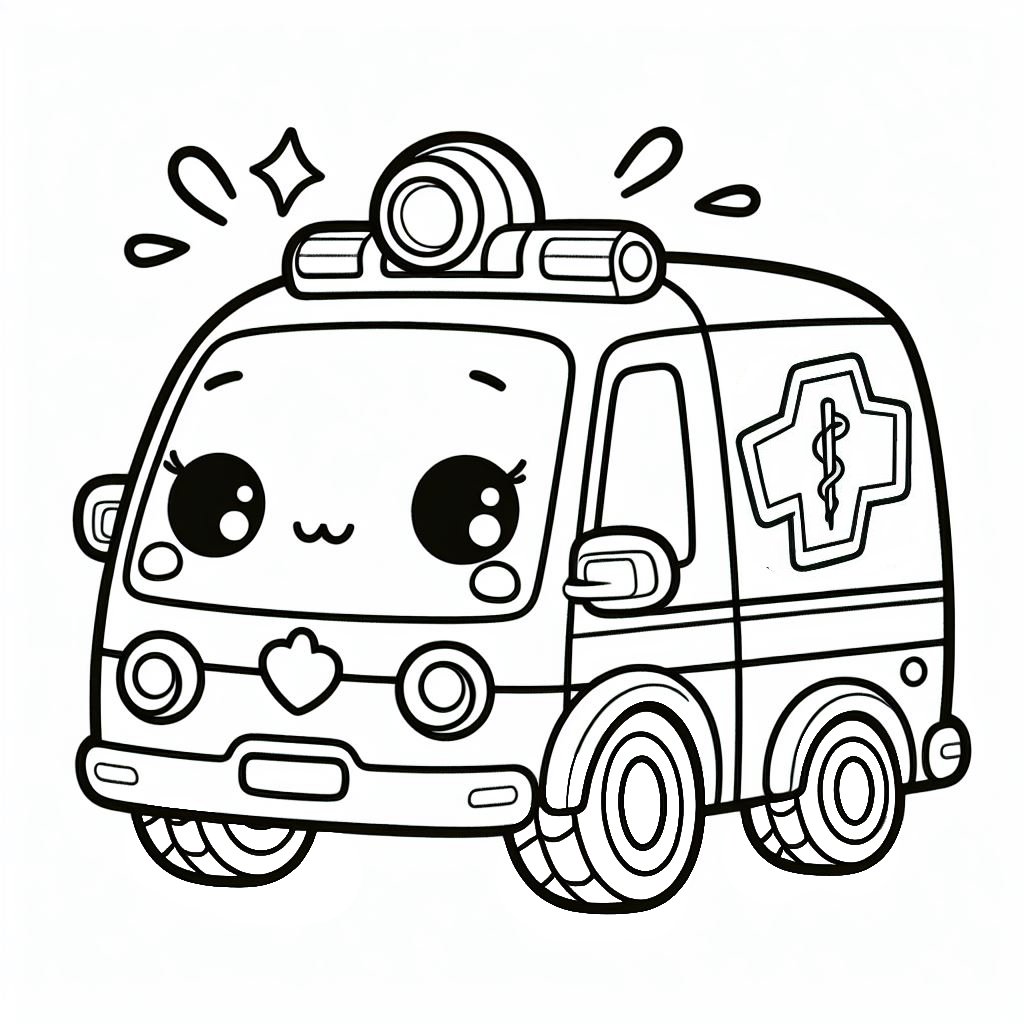 דף צביעה של אמבולנס חמוד - דף צביעה של אמבולנס חמוד להדפסה, ציור של אמבולנס חמוד לצביעה בחינם