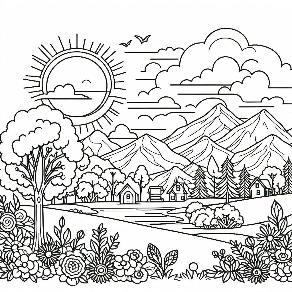 נוף לצביעה - דף צביעה של נוף להדפסה, ציור של נוף לצביעה בחינם